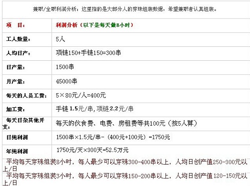 上图是我在某创业招商网上看到一个珠宝加工招在家做手工活的项目。按上面的图片上的分析,如果是在家做手工活,5个人每年能为你赚取50万的利润,我们再打个折,算40万。这个相对于广大工薪族来说,还是够赚钱了吧。如果你手上有这样一个赚钱的项目,你会不会去找外面的人帮你做?如果是我,我不会,我会自己去城外租个厂,招个几百人来干这个事情。