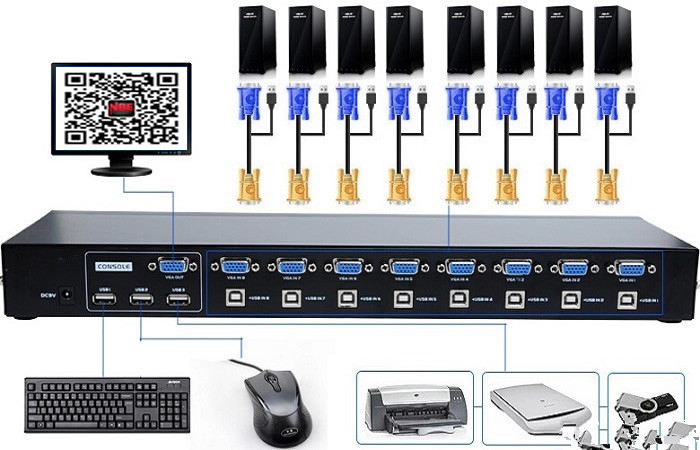 所谓KVM,就是Keyboard,Video,Mouse的缩写,正式的名称为多计算机切换器。简单的说,就是一组键盘,显示器和鼠标,控制2台,4台,8台,16台甚至到4096台以上的计算机主机。是让系统管理员可以通过一组键盘,显示器和鼠标,控制多台服务器或电脑主机的计算机外围设备。