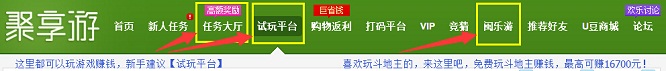 【试玩平台】免费玩游戏,无任何限制;【任务大厅】需要交保证金,但赚钱最多;【闽乐游】玩斗地主的好去处,最高能赚16700元!还有各种排名比赛大奖哦。