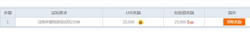 第四步,下载并登录棋牌客户端,根据要求完善账号。登录游戏试玩,进入房间游戏10~20秒后,点击右上角退出房间按钮(不是关闭客户端按钮)返回7u游戏平台刷新棋牌游戏页面,领取登录试玩奖励25000U币。