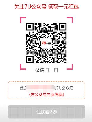 扫码关注7u游戏平台公众号,再发送注册的手机号码给7U服务号。