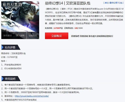 商品名称:开放性测试艾欧泽亚通行证