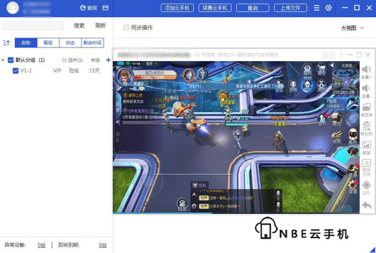 玩《想不想修真》要领先其他玩家,在上天之后不被蹂躏,靠谱的办法就是用NBE云手机来自动挂机修炼,让自己的境界永远领先别人,在天上也可以称霸一方。